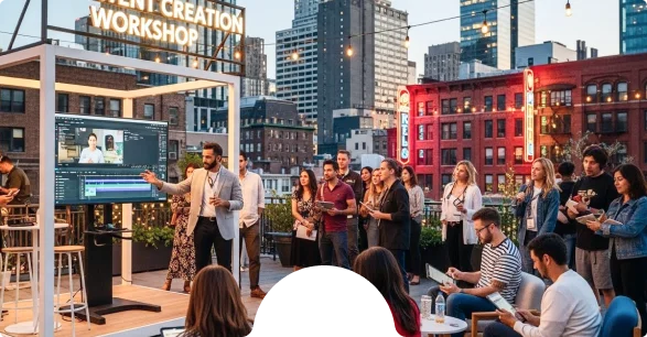 Hands-on content creation at 3-5 different stations - leave with approximately 10 pieces of viral-ready UGC content